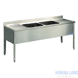 Realizzato in acciaio inox 18/10 AISI 304 spessore 12/10 mm, 2 sgocciolatoi, piano superiore inbutito, alzatina posteriore da 85 mm, dimensione vasche 600x500xh325, fondo esterno della vasca rivestito di un isolante acustico, piletta e troppo pieno, piedini regolabili in acciaio